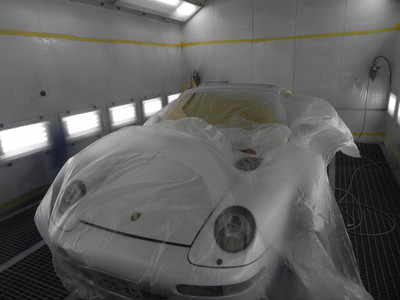 ◆ポルシェ993tb(全塗装)チェックをしながら仕上げをしました。若干の手直しをします。