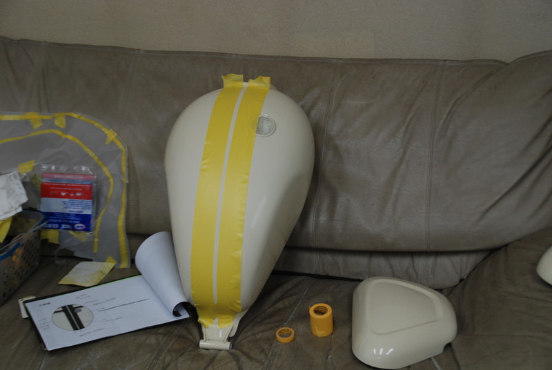 ◆トライアンフ(タンク塗装)足付けしてラインを検討しています