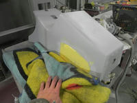 ◆デミオ(全塗装)磨いています、単体下地処理中