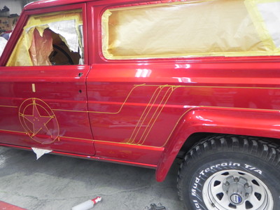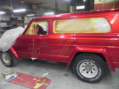 ◆チェロキーチーフ(全塗装)立て付け調整をしてラインを貼っています