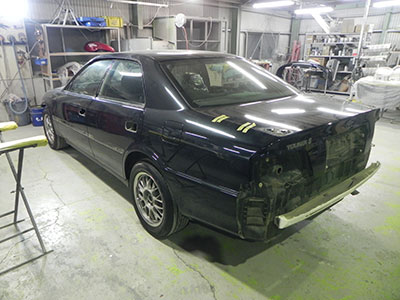 ◆チェロキーチーフ(全塗装)立て付け調整をしてラインを貼っています