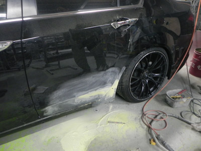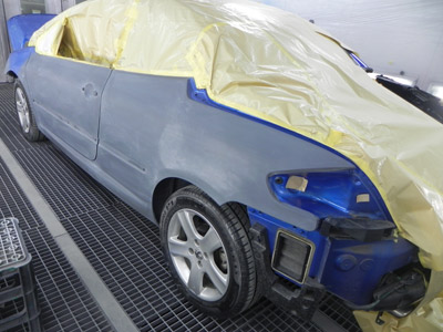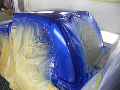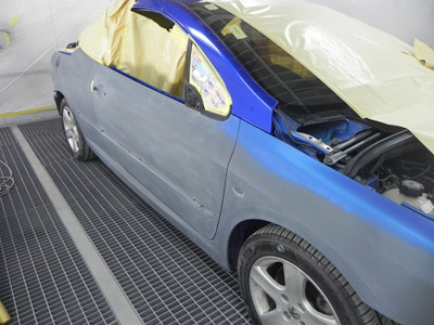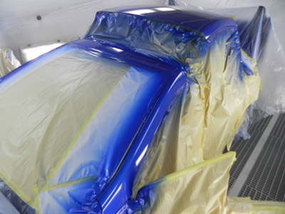 ◆プジョー(全塗装)本体(ルーフ)塗装しました、現在マスキング中です。明日はルーフ以外の本体を塗装予定です。