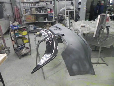 ◆ハイエース(ルーフ塗装他)バンパー補修しました。