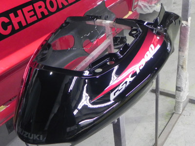 ◆ハヤブサ(シートカウル塗装)塗装しましたが、ステッカーの際にはじきがでたので塗り直します。