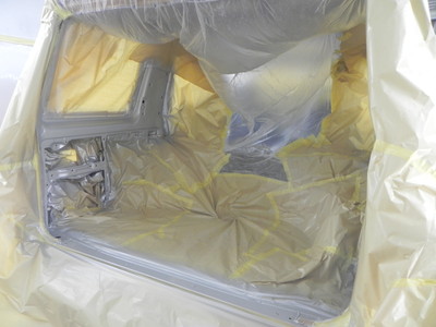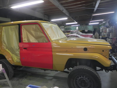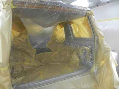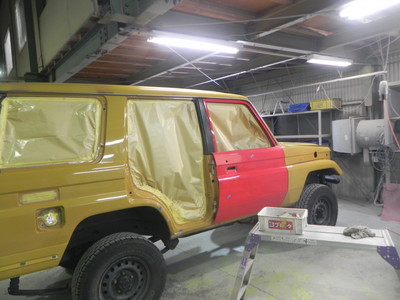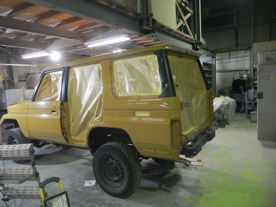 ◆ランクル(全塗装)分解完了です。室内塗装して下地処理に取り掛かりました