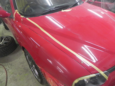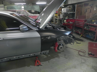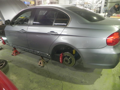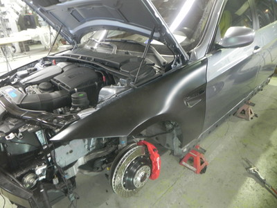 ◆BMW335(全塗装)交換するフェンダーを仮付けしました。