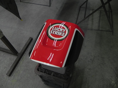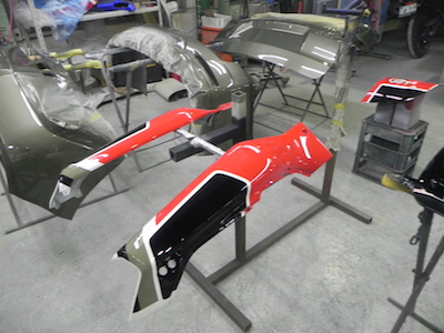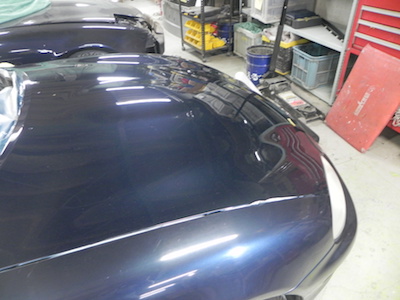 ◆ロードスター(フード塗装)つや消しで塗りましたがボディー色にて塗り直しです
