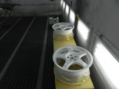 ◆セリカ(ホイール塗装)スッテッカーを貼ってオーバークリアをしました