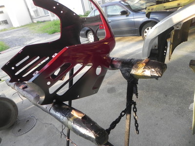 ◆GSX-R400(カウル補修)一色目塗装しました