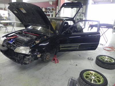 ◆ロードスター(全塗装)下地処理中、明日塗装します。