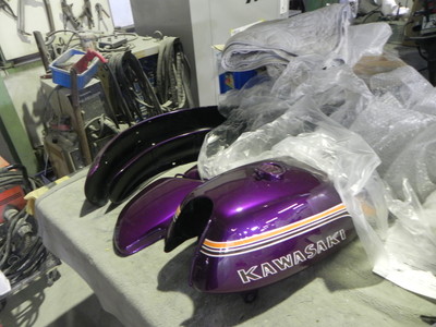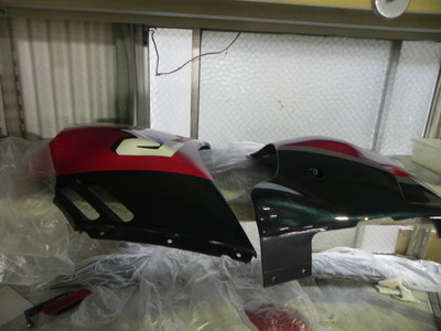 ◆GSX-R400(カウル補修)クリア一回目を塗装しました。