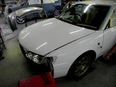 ◆RX-8(全塗装)磨いています、単体下地と塗装をしています