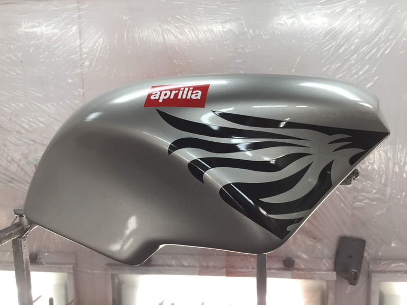 ◆アプリリア(タンク塗装)ステッカーを貼って一回目のオーバークリアをしました