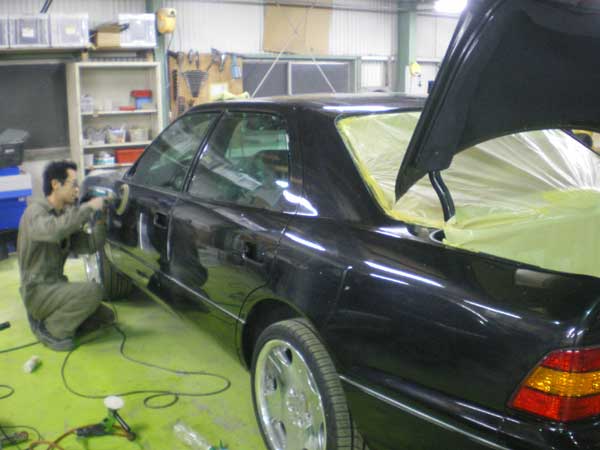 レクサスLS400、現在磨き作業中です。