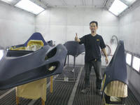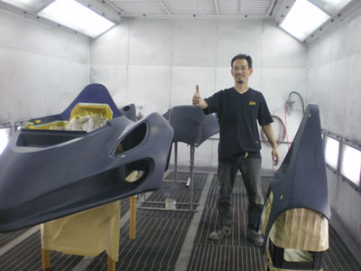 ◆エマージ(サイドカー塗装)本日1色目塗装しました