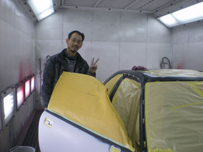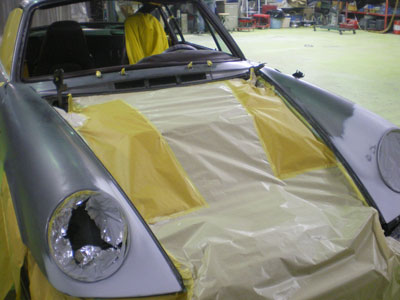 ◆ポルシェ964(全塗装)現在マスキング中です、小物の水研ぎ進行中です。