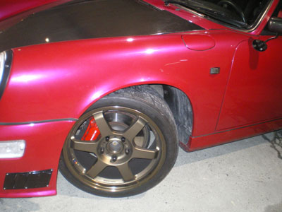 ◆ポルシェ964(フェンダー加工他)本日入庫しました、左フロントのフェンダー加工は完了です。