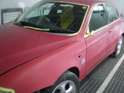 ◆アルファロメオ147(全塗装)水研ぎをしました。明日マスキングをして塗装予定です。