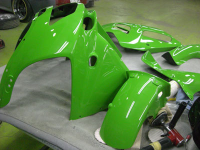 ◆ZX-9R(バイク塗装)磨き作業をしています