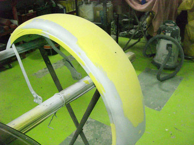 ◆フェンダー(バイク塗装)パテをつけて下地作業をしています