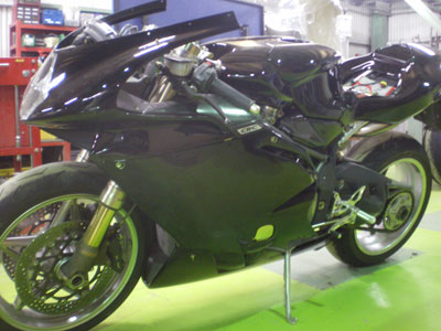 ◆DUCATI 916(バイク塗装)アッパーカウル(レース用)を黒に塗装しました。