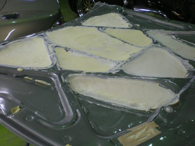 ◆レジェンド(全塗装)今日はボンネット裏の成形をしています。