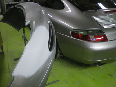 ◆ポルシェ996(バンパー塗装)下地作業をしています