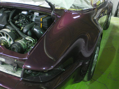 ◆ポルシェ964カブリオレ(全塗装)中間磨き完了です。仕上げ磨きは組みつけが完了してからの予定です。