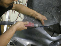 ◆ゼファー(バイク塗装)研ぎを入れて塗装の準備をしています