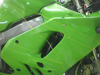 ◆ZX-9R(バイク塗装)ライン引き作業に入りました