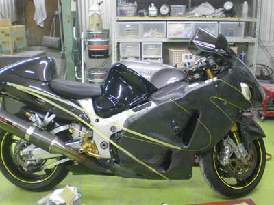 ◆ハヤブサ(バイク塗装)ライン引き作業に入りました