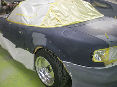◆ユーノス(全塗装)マスキングをしましたので明日塗装の予定です