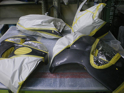 ◆ハヤブサ(バイク塗装)ライン引き作業に入りました
