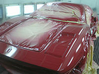 ◆フェラーリ308GTB(全塗装)本体を塗装しました。明日は先日のクラックの修正です